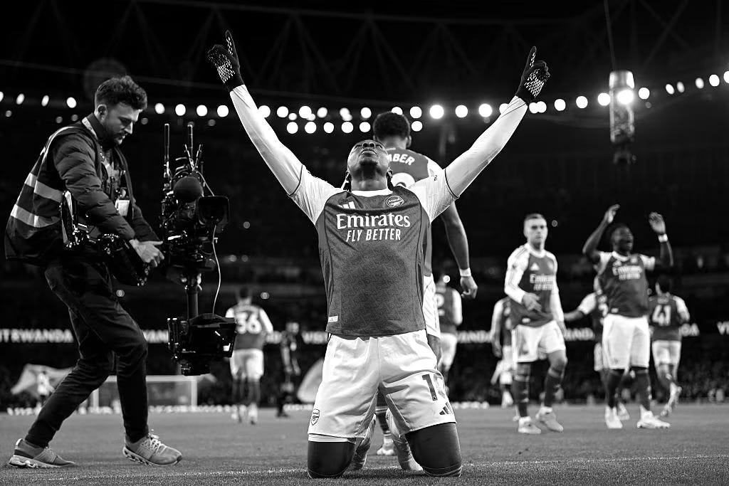 On the pitch, where Arsenal once again look near-unbeatable, a perfect blend of impassible stoicism and box-cage flair, where Spanish creators find diminutive killers with passes only they can see, where English stalwarts crash between boxes and throw opponents to the ground and laugh, where the attack in the final minutes was, as Ian Wright watched from the stands and Rocastle from wherever he rests in his power, all London, all Black, all Arsenal: Eberechi Eze, Noni Madueke, Ethan Nwaneri, Bukayo Saka. It doesn’t change.
