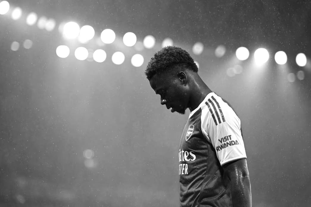 “It’s okay to feel unsettled,” Bluesky user Jack Somnambulist wrote in response to my emotional outburst as the final whistle went last night; “we have no control.” It’s such a simple, stupid thing to forget, that this is not a PlayStation game or a movie or a novel and will not conform to the natural shape of stories as it happens, as much as we might try to squeeze it into three acts. Jonathan Liew’s column confronted the home fans, who groaned and moaned their way through ninety turgid minutes: “What must it be like as an Arsenal player to play in front of these people right now […] maybe …it doesn’t help?” Misguided and ugly as it so often is, shouting is the only vehicle, really, by which fans do impose something resembling authority. Moaning is the noise of 60,000 authors disappointed by the gap between the story they were writing and the hard, uncaring chaos of real.